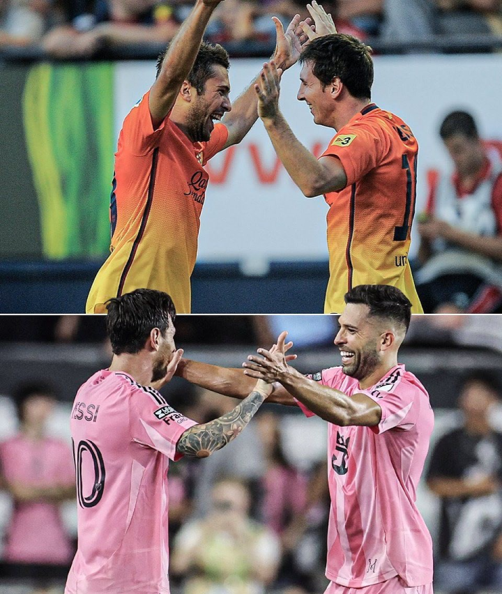 在巴萨,他与梅西的默契达到了心领神会的境界。球迷们将他们的连线亲切地称为“巴西连线”。16-17赛季国家德比,伯纳乌球场,梅西读秒绝杀后跳上广告牌庆祝,身后是张开双臂奔向他的阿尔巴—— 那个由阿尔巴送出的倒三角助攻,成为了国家德比历史上最经典的画面之一。